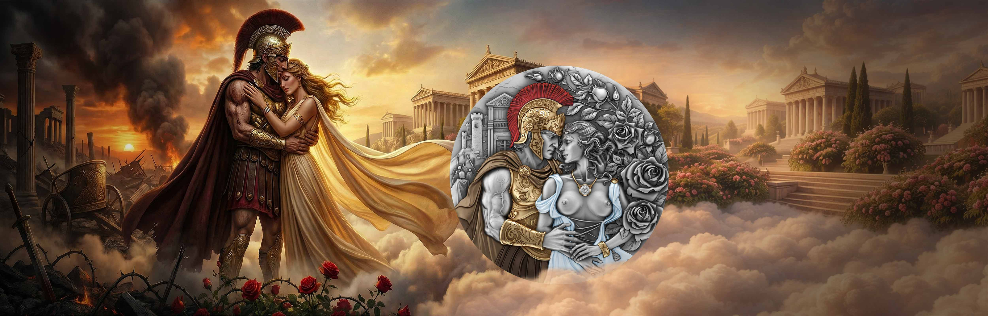 A story where war and love arise from the same primal force. Ares and Aphrodite united in silver — power and passion captured in high relief. A limited collectible that reveals the spark born when heart and sword collide.