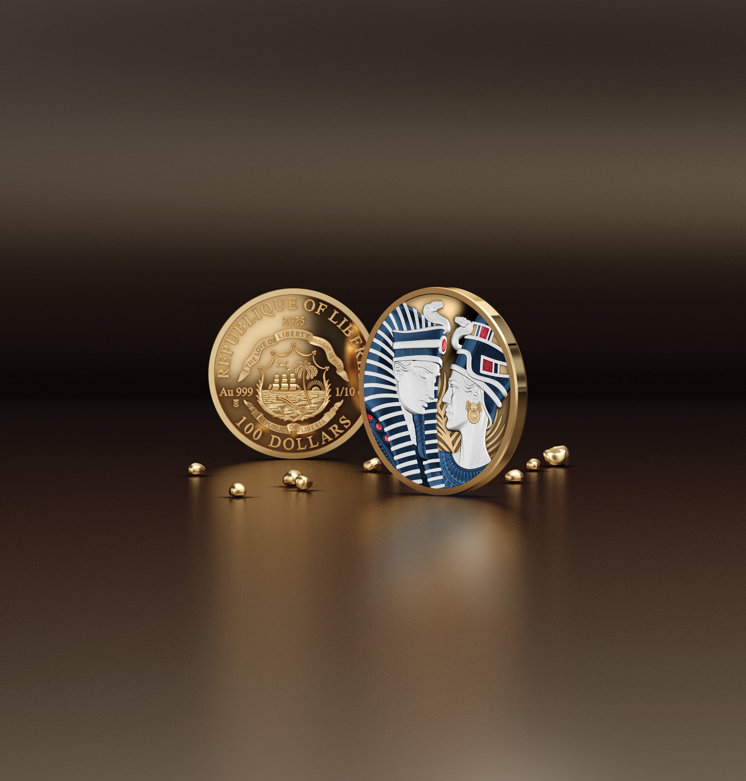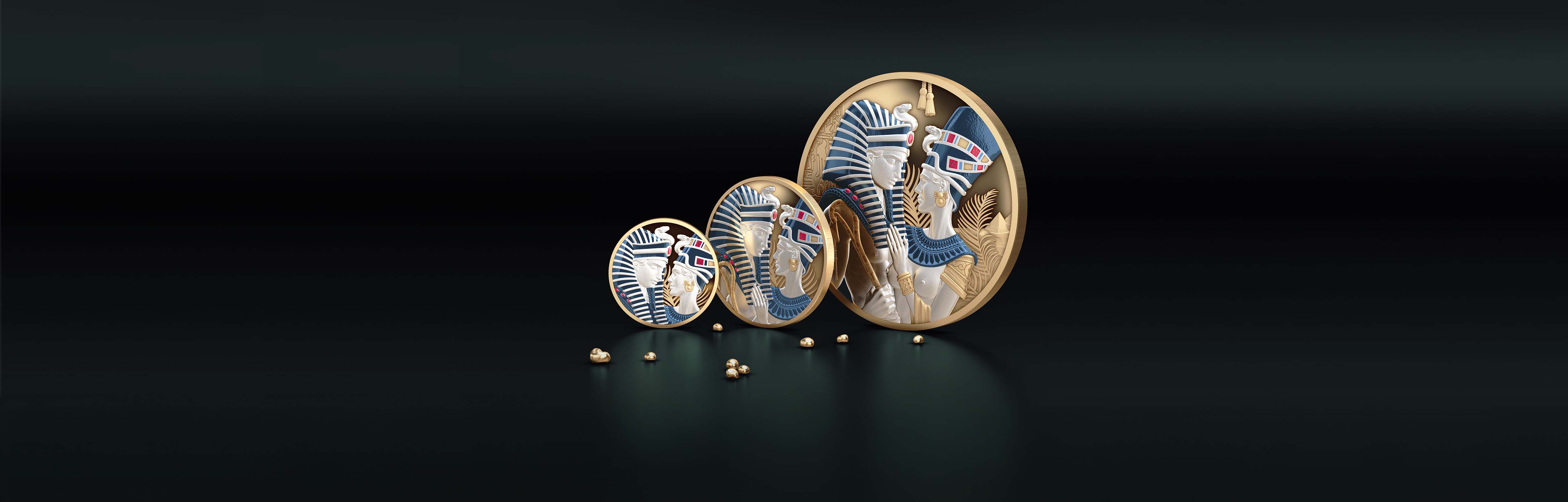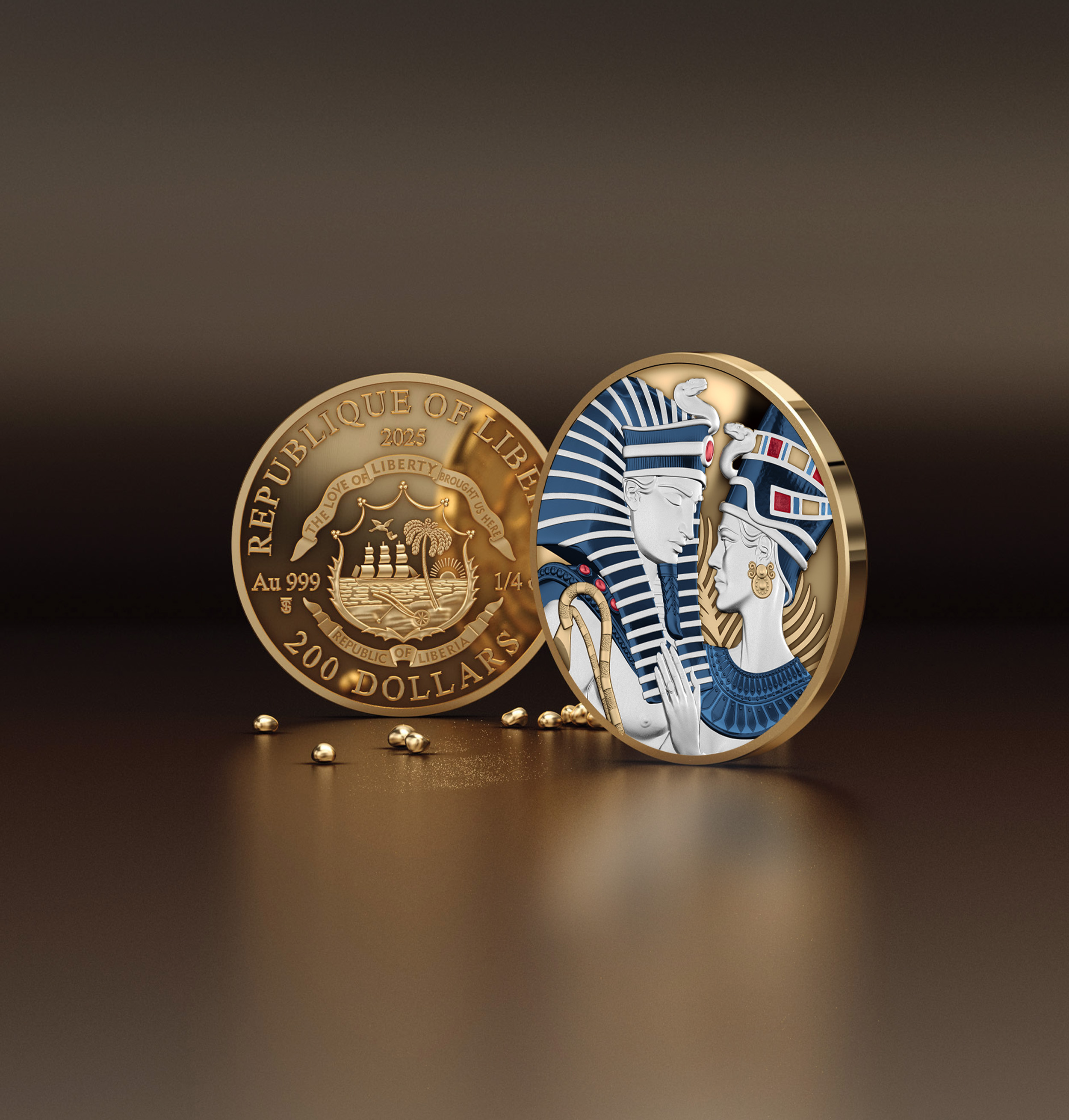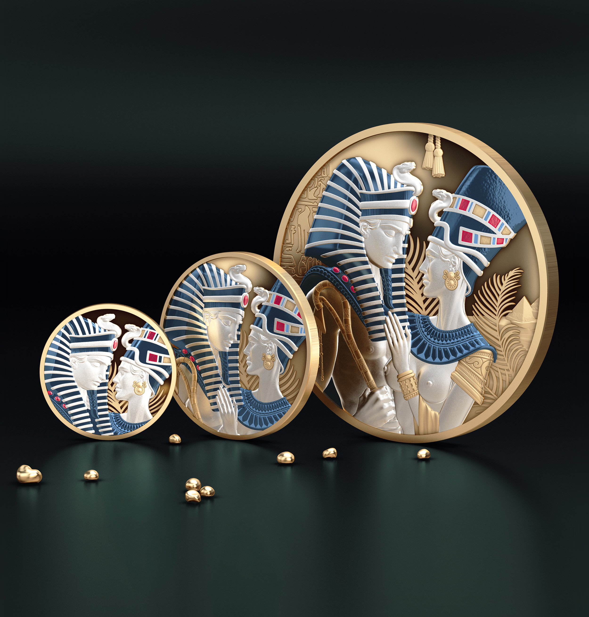 Building on the success of our first Power of Love series, the new “Amenhotep & Nefertiti” gold collection marks the next chapter. This exclusive release is reborn in only 25 limited-edition three-coin gold sets, each enriched with the iconic colors of ancient Egypt.