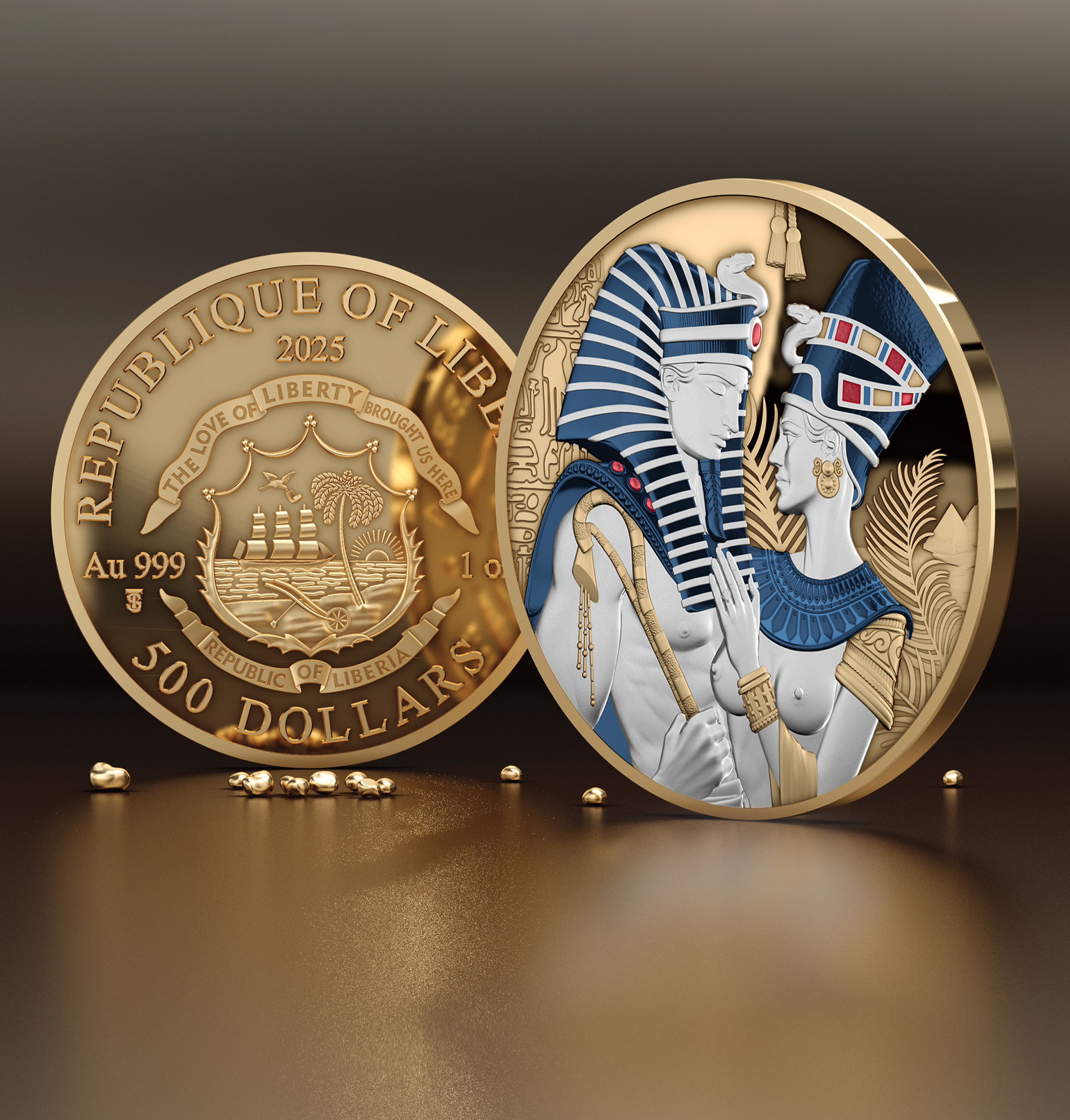 A royal couple reborn in iconic ancient Egyptian colors: Only 25 gold coin sets