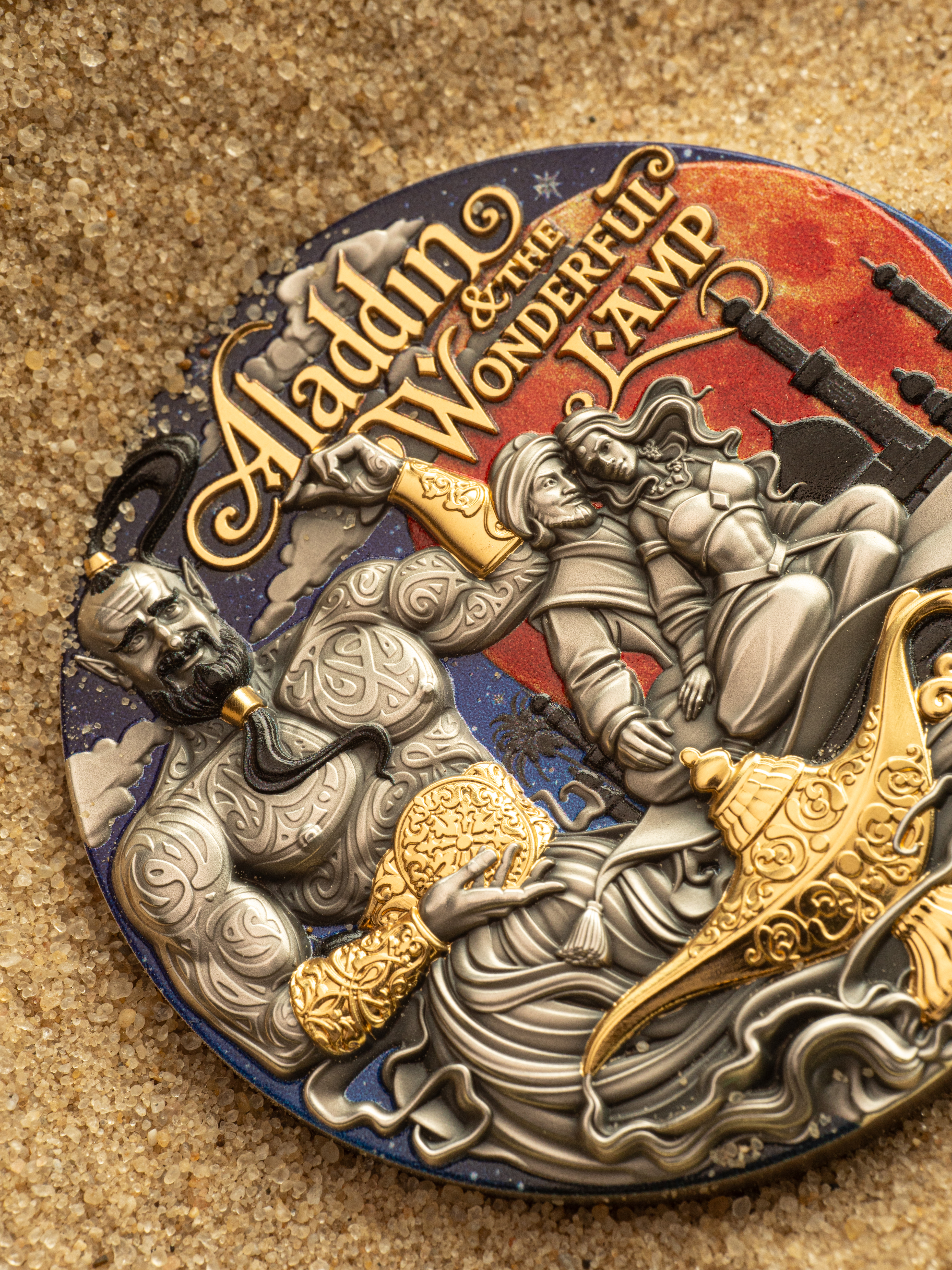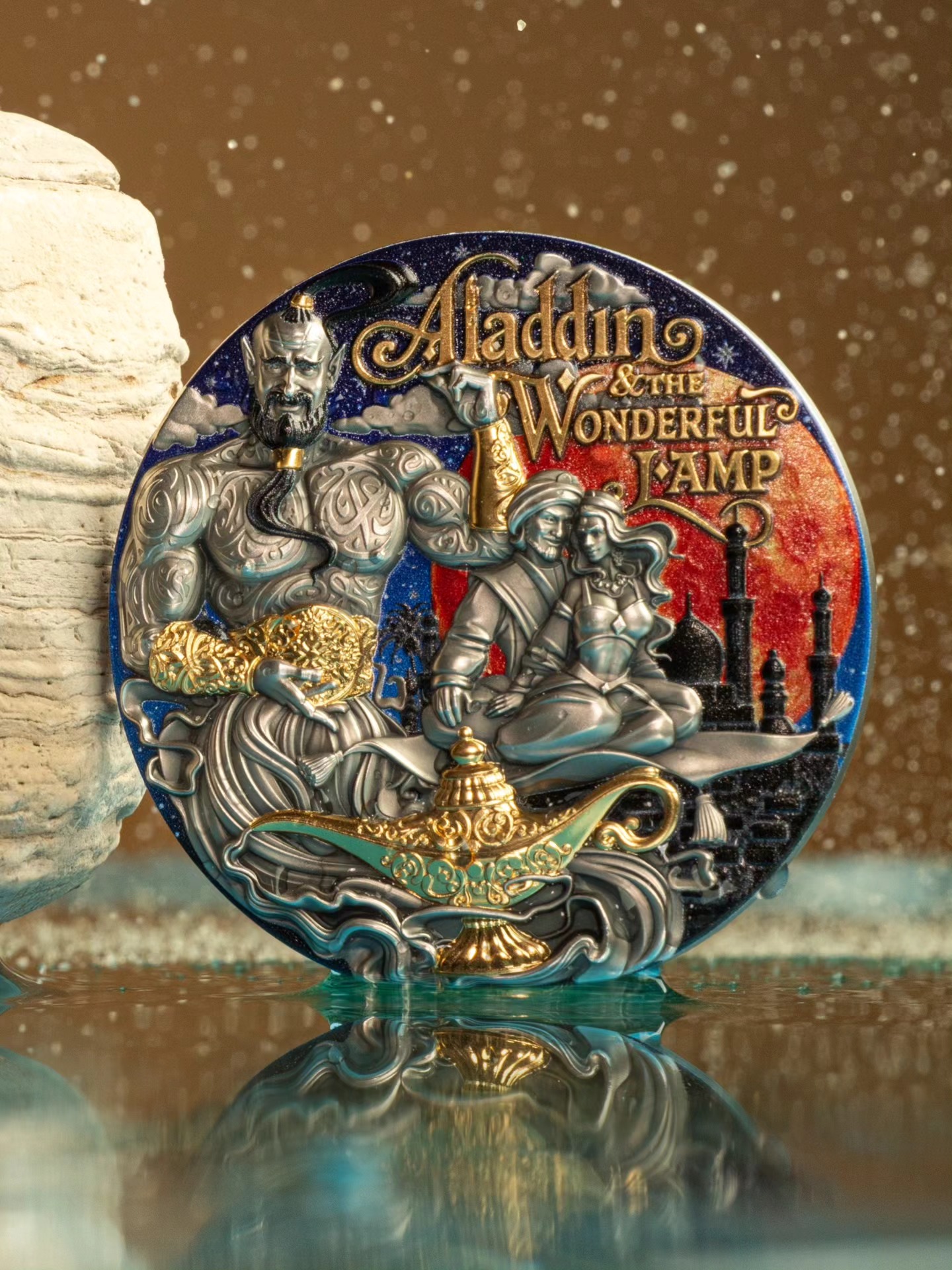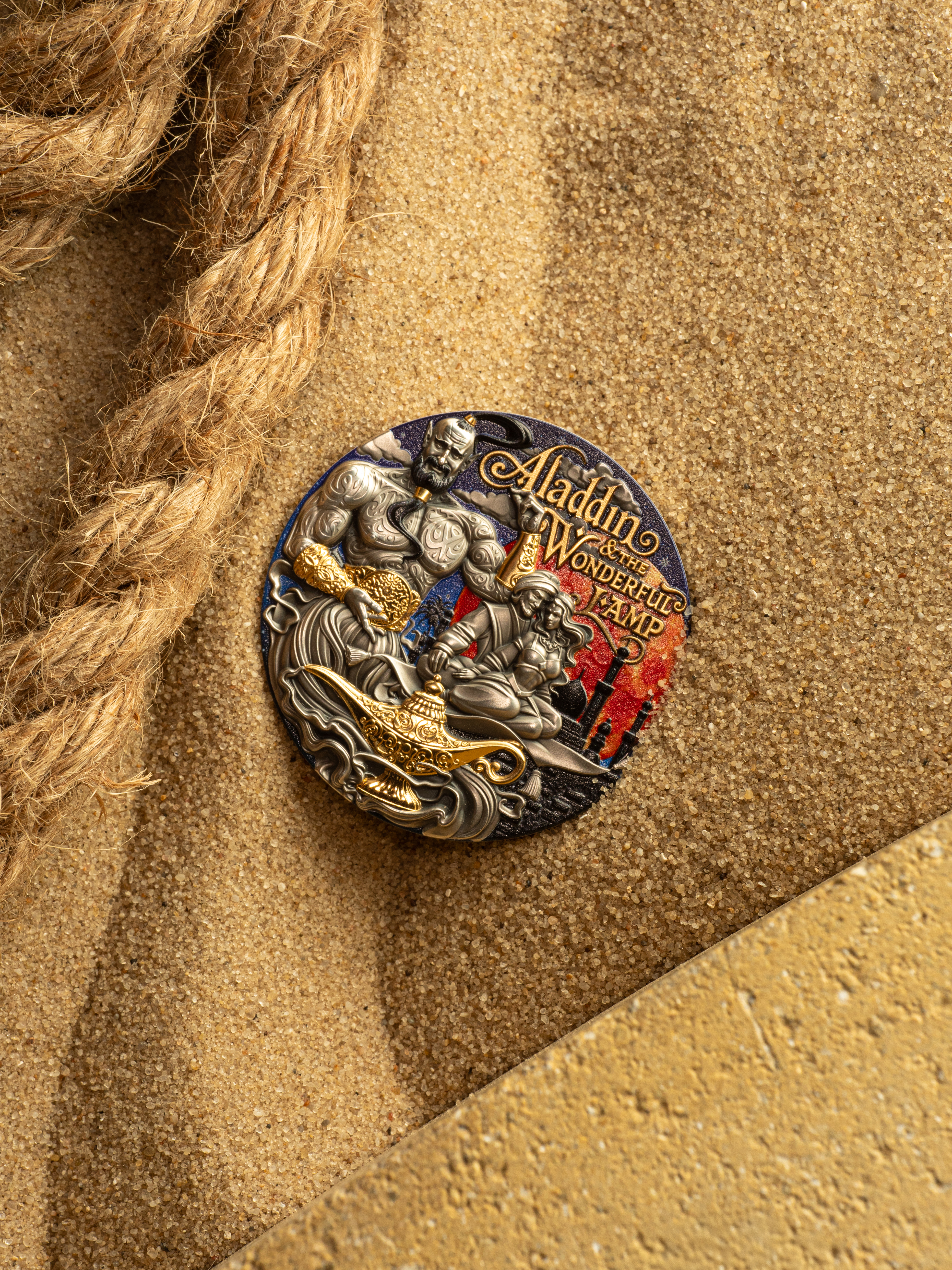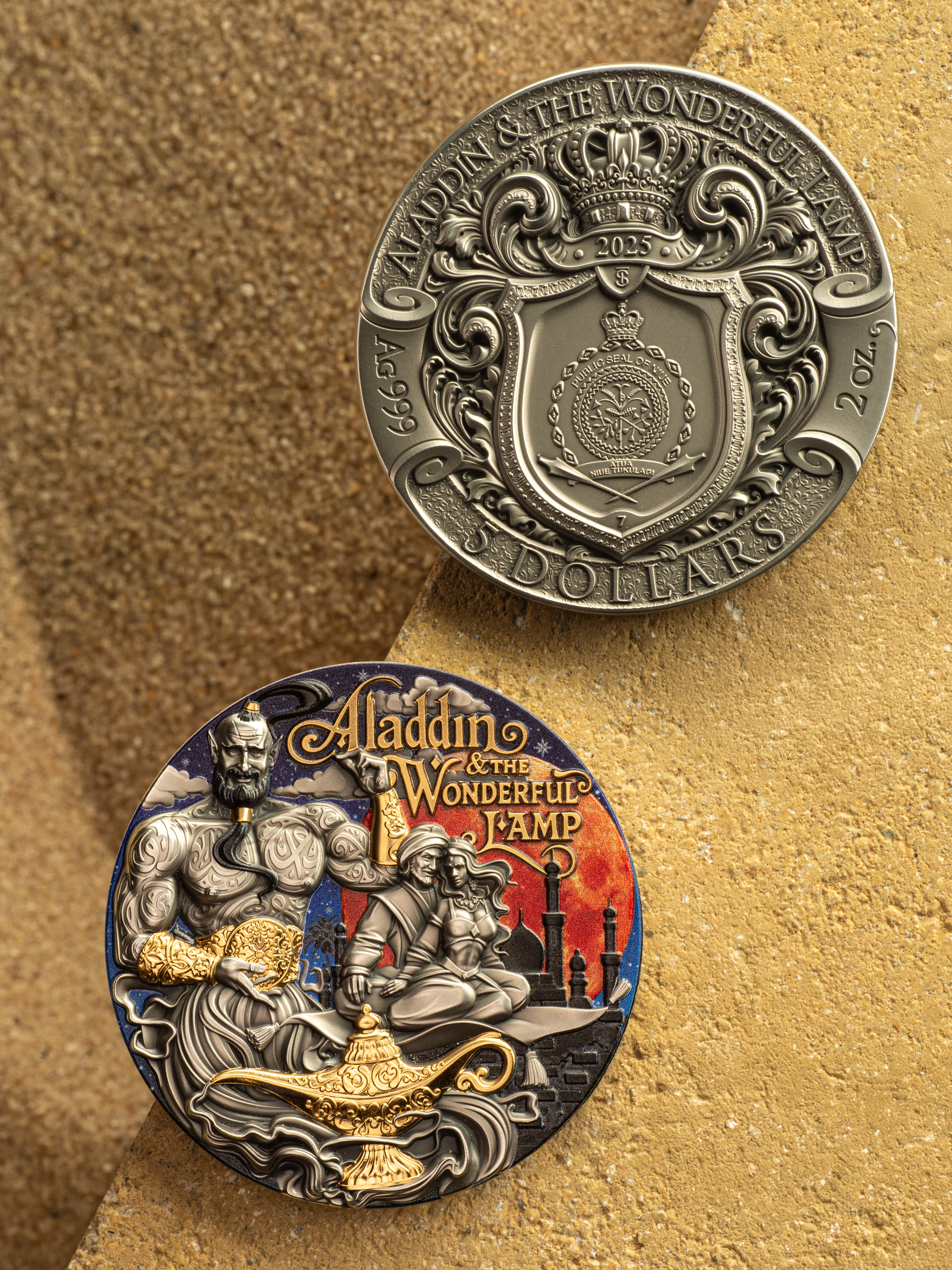 “Your wish is our command.” Aladdin & The Wonderful Lamp returns — the second silver collectible coin in the Fabulous Stories series, following the first release, Beauty and the Beast.