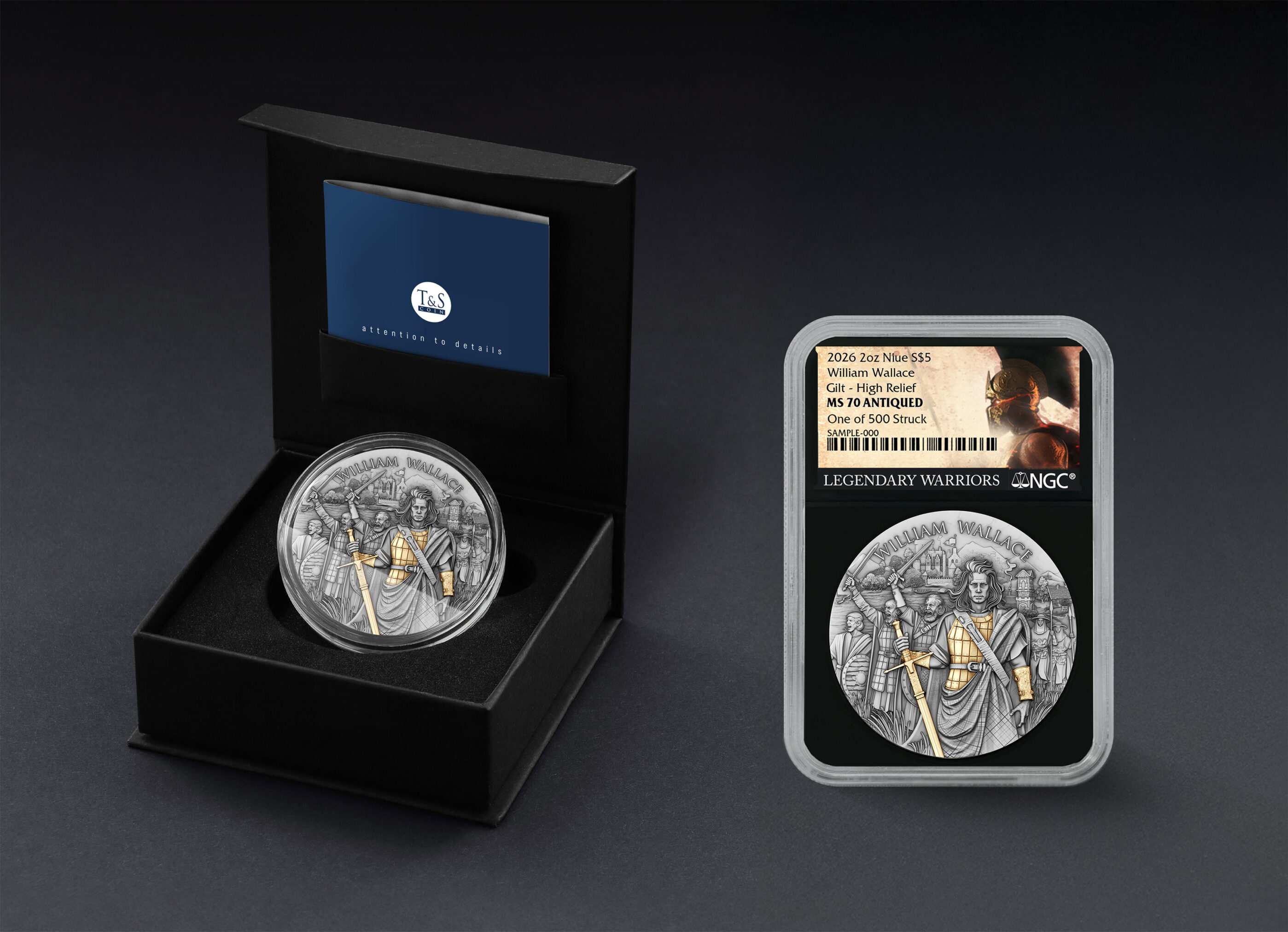 We are proud to present William Wallace — the latest release in the Legendary Warriors series, developed by T&S Coin in collaboration with Pinehurst Coins, one of the leading names in the U.S. numismatic market.
