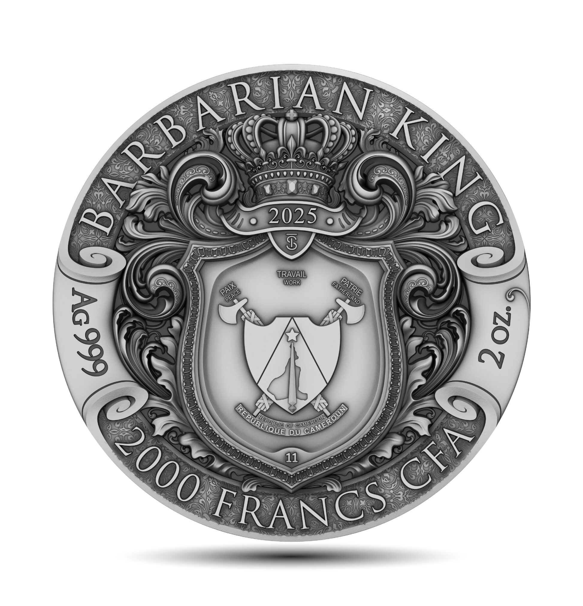 Struck in two ounces of fine silver (.999) with an antique finish and selective gilding, the coin is issued for Cameroon. Each piece is presented in a premium black collector’s box with a Certificate of Authenticity. The mintage is limited to 500 pieces worldwide.