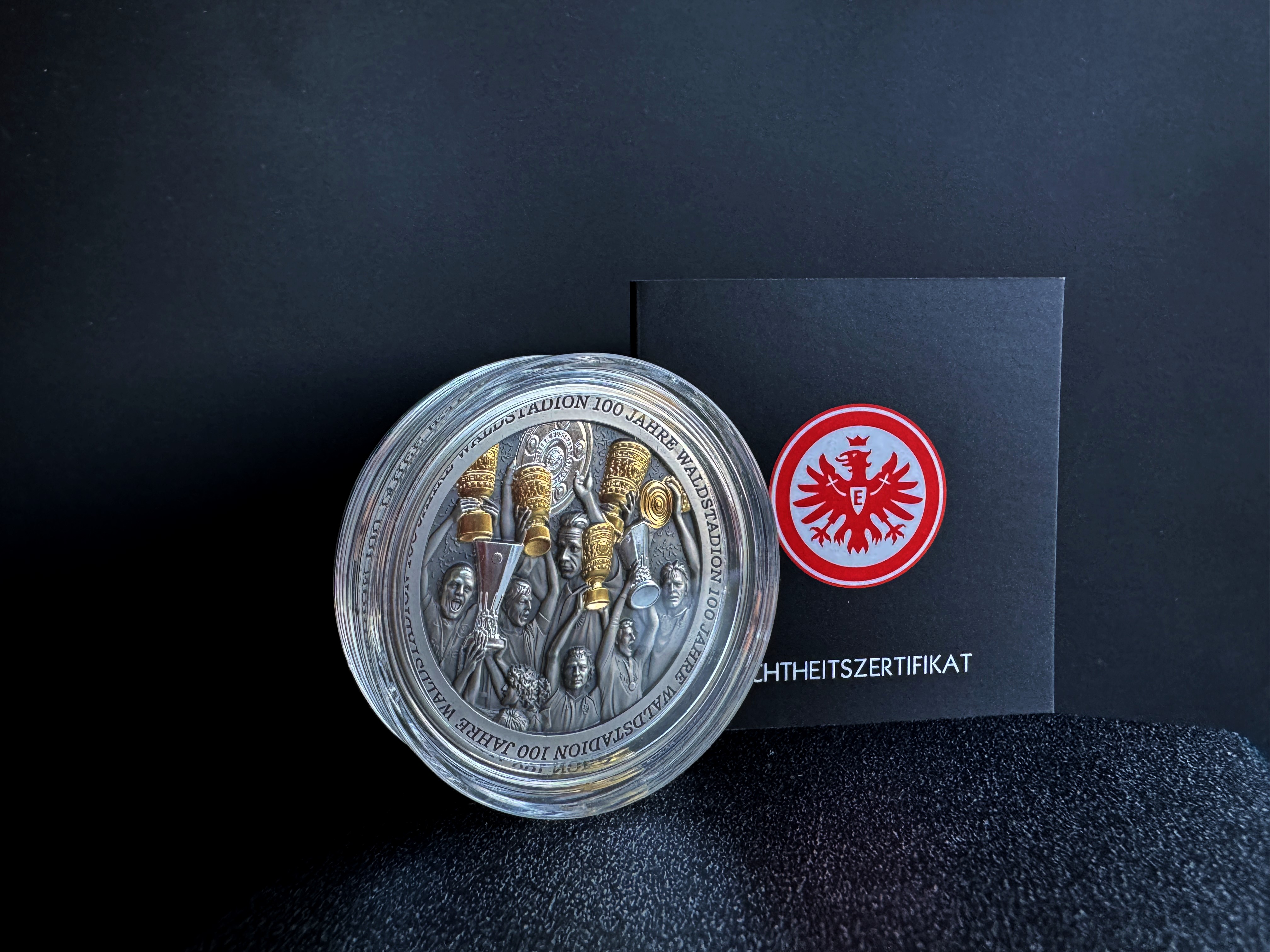 To honor this remarkable centenary, T&S Coin partnered with Eintracht Frankfurt to create an exclusive collection that captures the essence of the Waldstadion legacy.