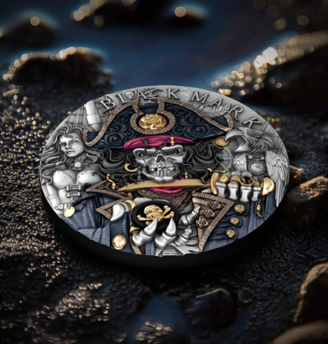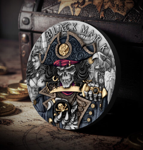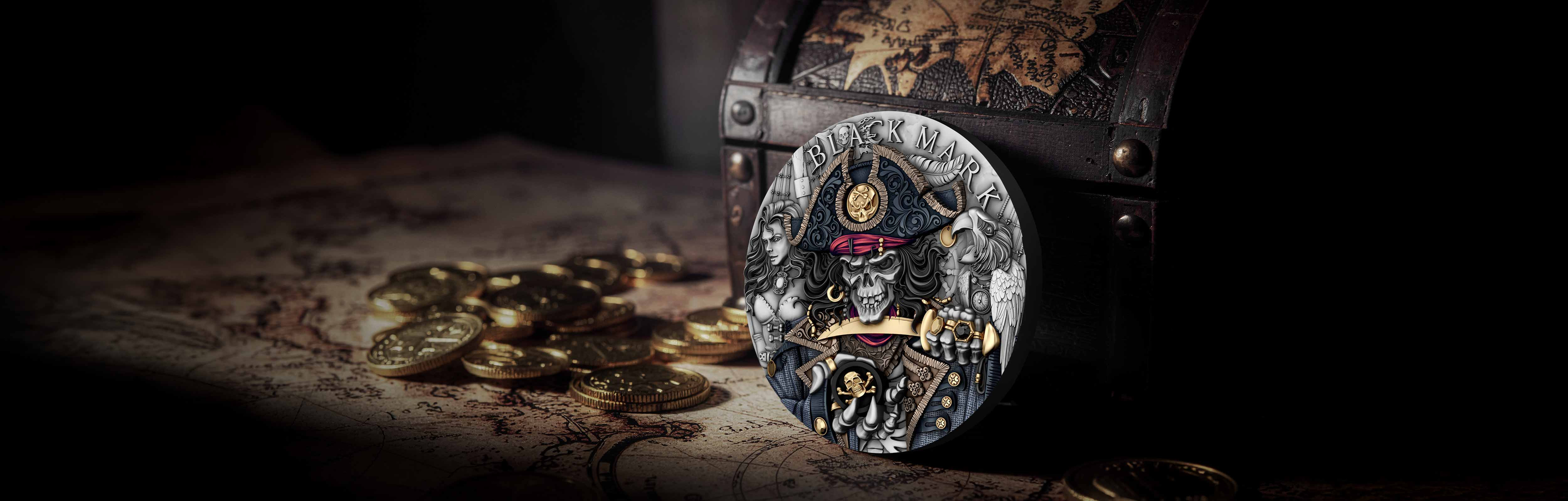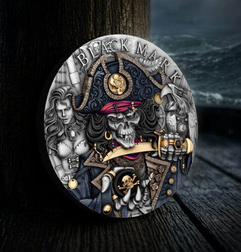The Pirates series expands with its third release — the silver coin Black Mark, adorned with a certified black diamond. A continuation of a story where loyalty is tested and judgment is absolute.