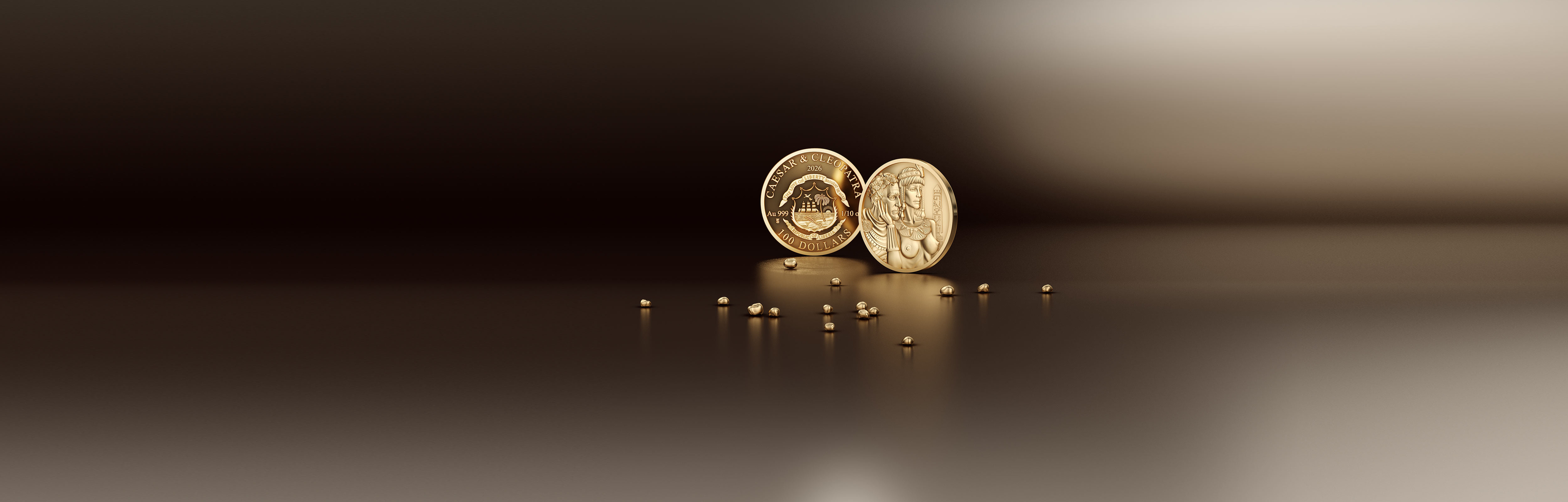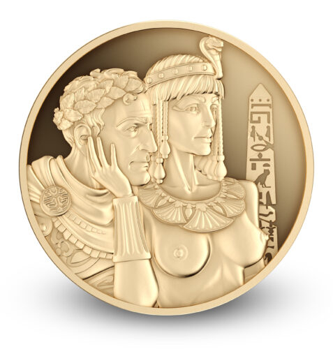 Step into a story of love, power, and history with our newest gold edition—three exquisite coins featuring the same iconic design as our highly acclaimed silver collectible. Caesar & Cleopatra captures the fateful meeting of two extraordinary figures whose alliance shaped the course of nations.