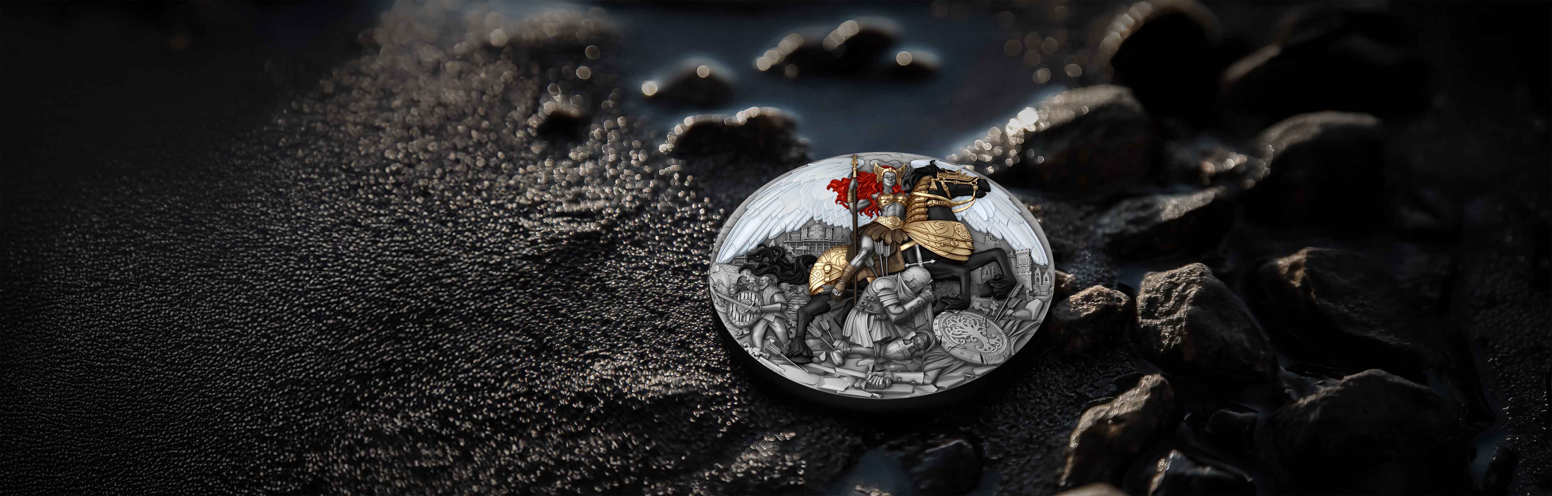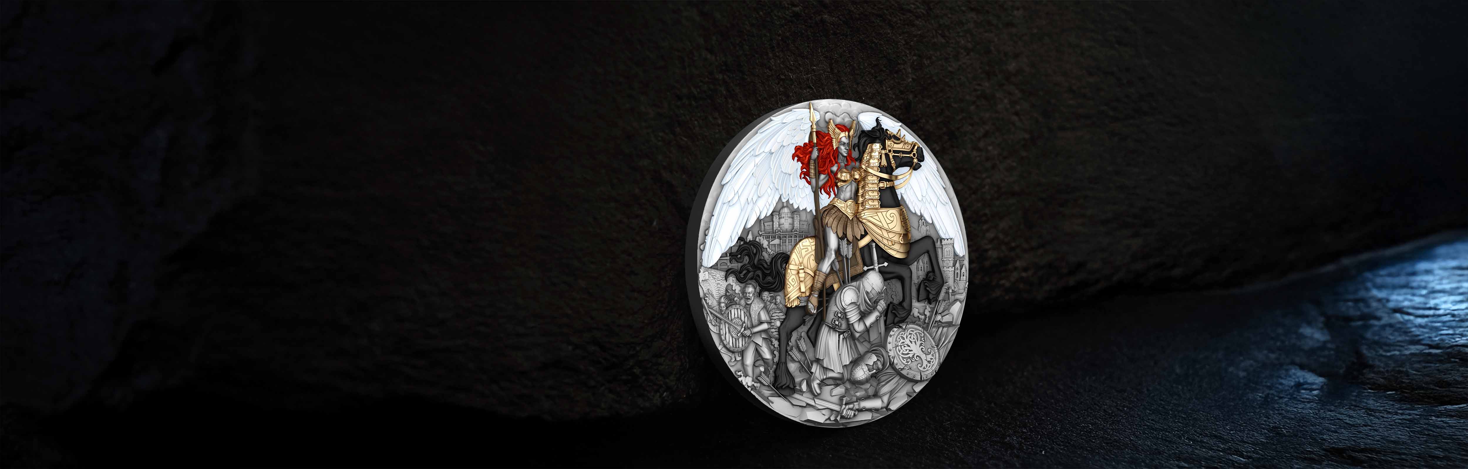 Silver collectible coin portrays the fragility of human destiny, the courage to face it, and the eternal, unbroken bond between humankind and the divine.